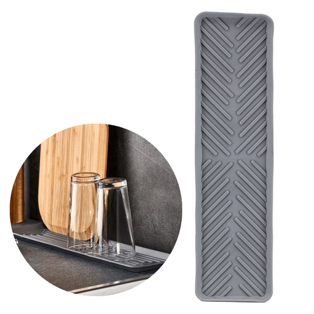 Escorredor de Louca Tapete Pia 40 x 10cm Flexível Copo Talher Top Clean Cinza