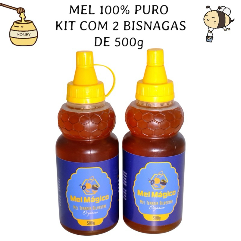 Mel Orgânico 100% Puro Bisnaga 500g - Kit Com 2 unidades de 500g
