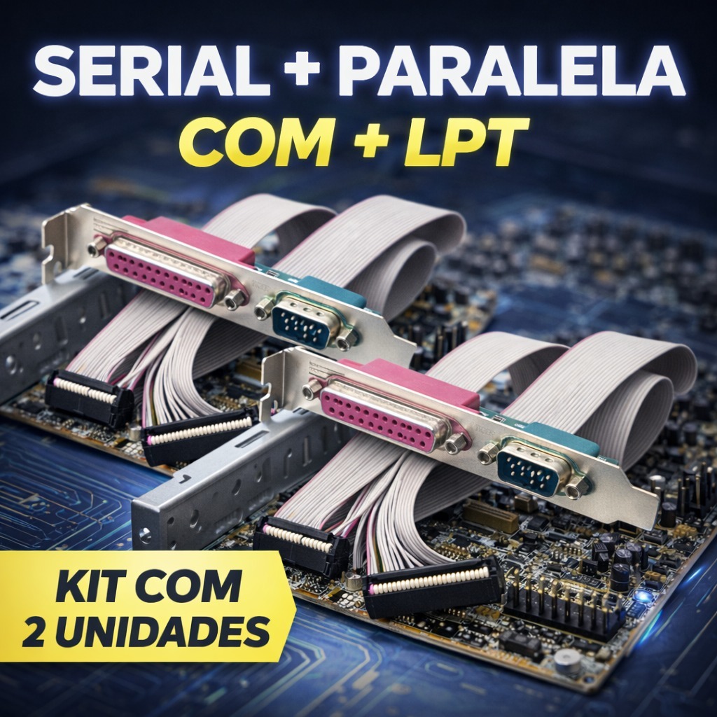 Kit 2 Adaptadores Cabo Flat portas Serial COM e Paralela LPT com espelho para placa mãe PC