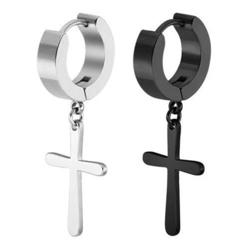 Par de Brinco de argola com cruz Aço Inox antialergico Kpop com cruz feminino e masculino