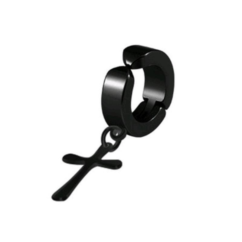 Brinco de Pressão Cruz Aço Inox Antialergico Cirurgico Argola com Crucifixo Masculino1 unidade-PROMOÇÃO
