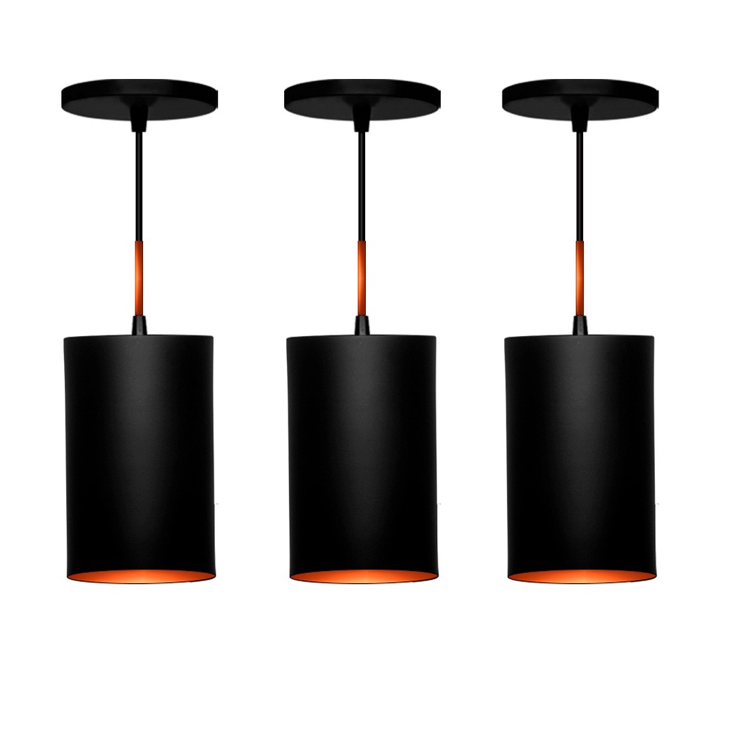 Kit 3 Pendentes Cone Canadá Preto Com Cobre Aluminio Decoracao