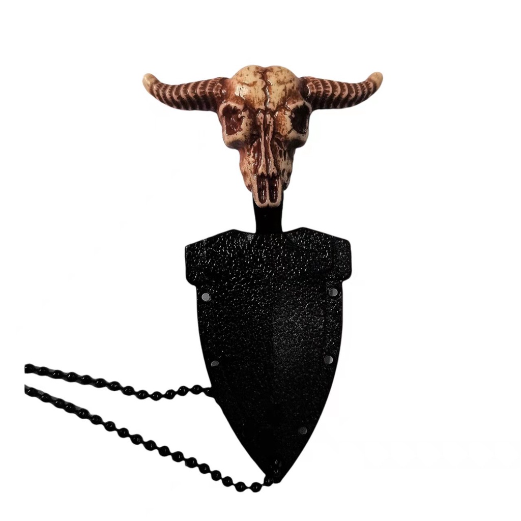 Mini Faca Push T Dagger Ds Com Caveira Na Bainha e Corrente 8cm