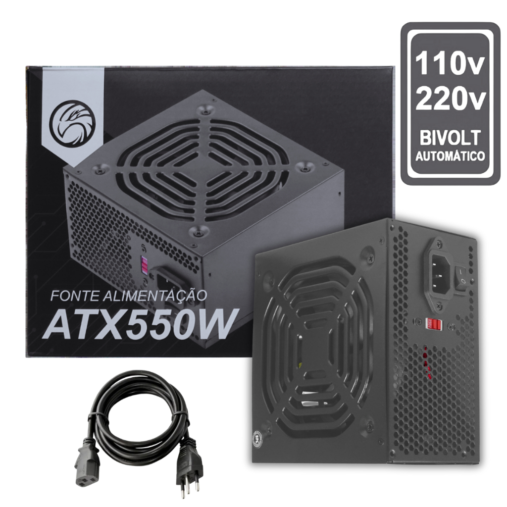 Fonte de Alimentação Atx Para PC Gamer 550w Reais Super Silenciosa Bivolt Preta