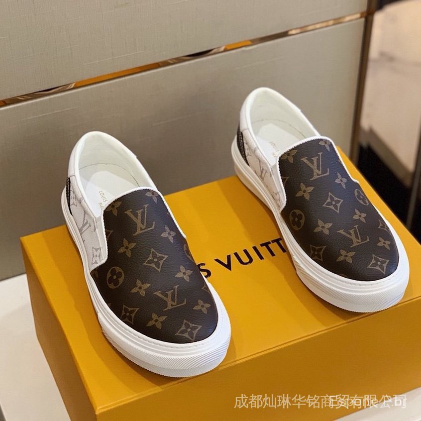 Sapatos masculinos brancos marrons originais LV Louis Vuitton Sneakers casuais IJE5