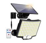 Refletor Painel Solar Luminária Parede Poste Lâmpada 4 LEDs Externa Jardim Solar Sensor Presença Controle remoto