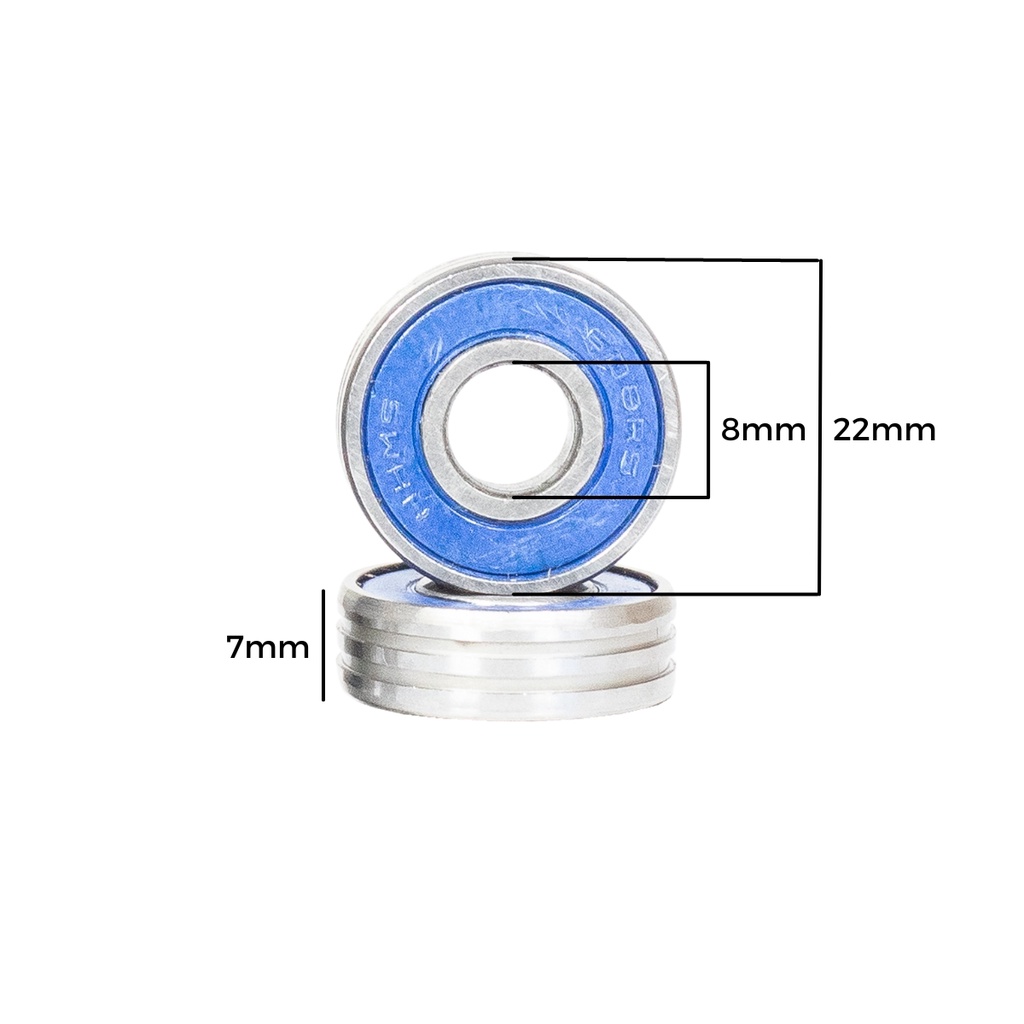 Kit com 20 Unidades de Rolamentos Abec 1 608RS HHMS Importados Com Estrias Para Skates e Patins - Envio Imediato