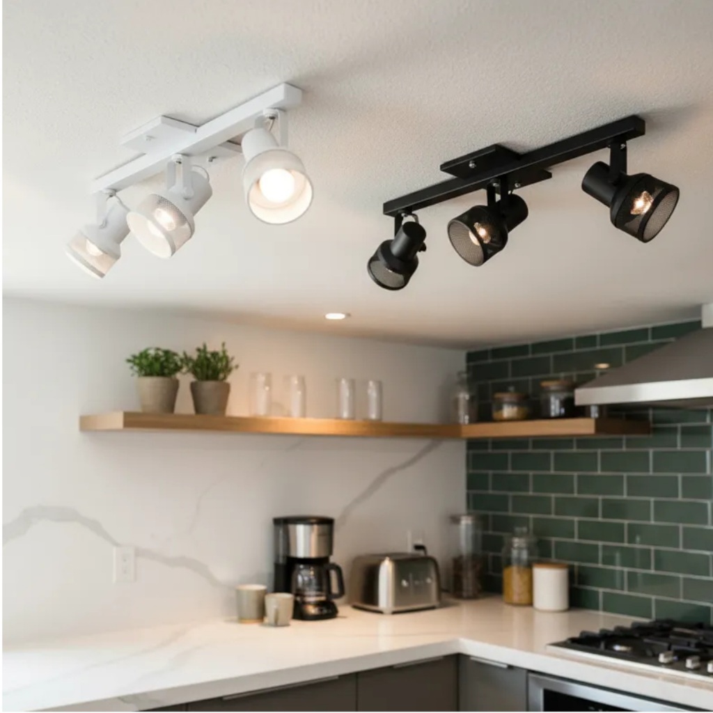 Luminária ALUMÍNIO Spot Trilho Tela Para 3 Lâmpadas LED Branco ou Preto Fácil Instalação Metal Direcionáveis Casa Sala Quarto Cozinha Corredor Hall área Gourmet