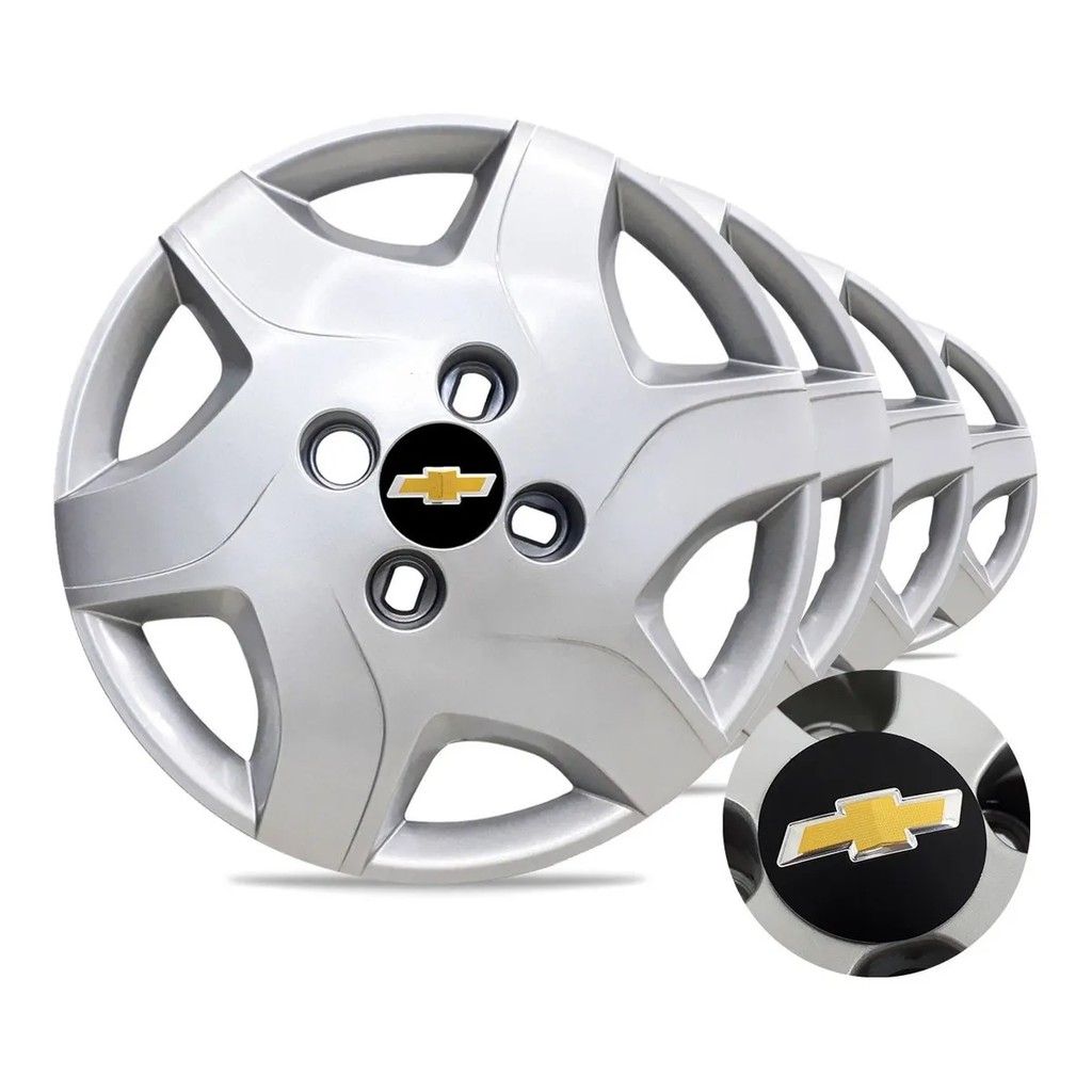 Jogo Calota Aro 13 GM Celta Prisma Corsa Classic 2002 2003 2004 2005 2006 2007 2008 2009 2010 2011 2012 2013 - 4 Peças