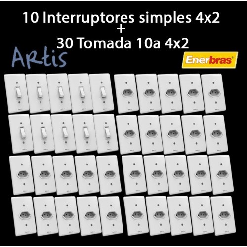 KIT 30 TOMADAS 10A + 10 INTERRUPTORES SIMPLES 4X2 - ENERBRAS ARTIS - KIT3010EA