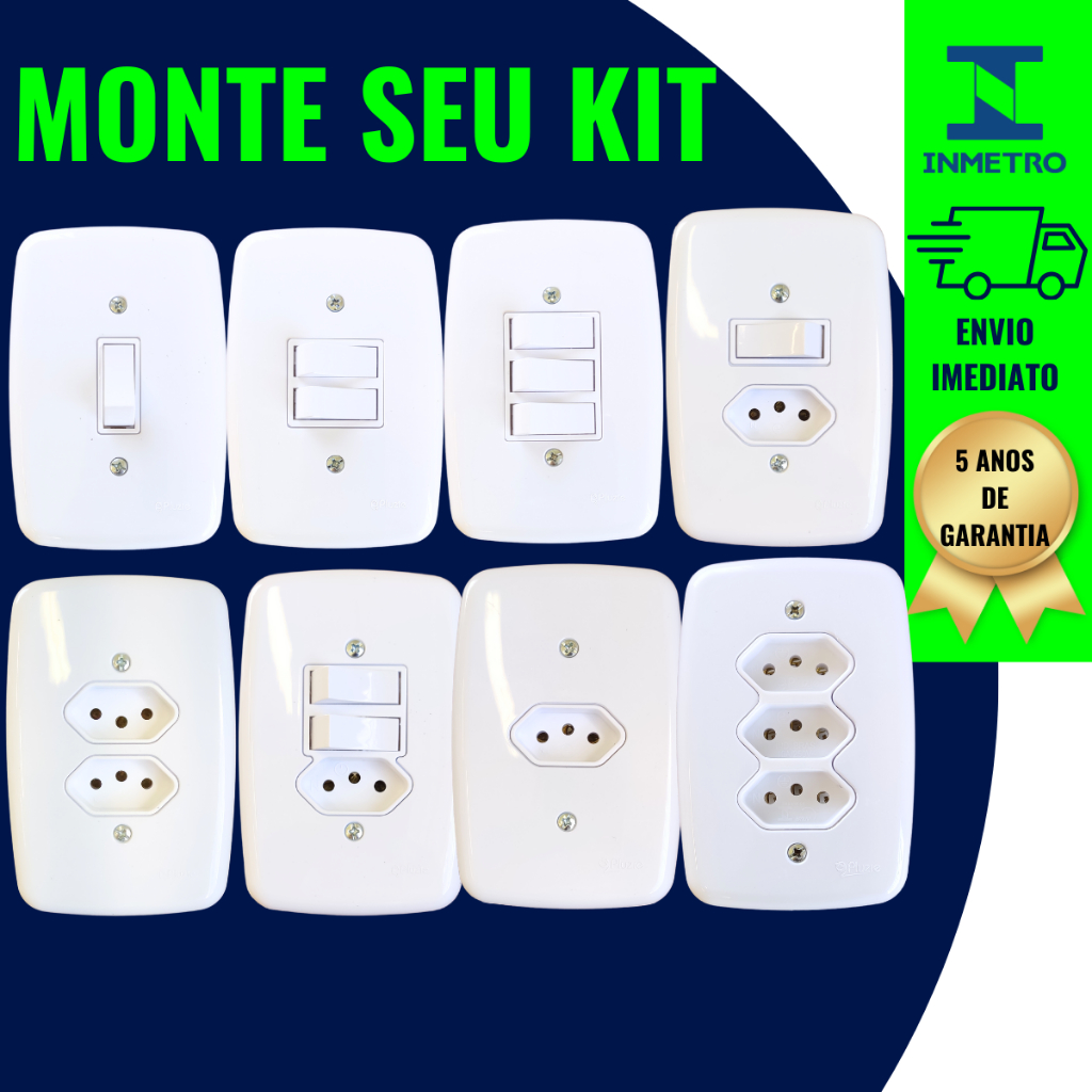 Tomada e interruptores Apagadores Tomada Dupla 10A Tomada 20A interruptor Simples interruptor Paralelo Branca Monte seu Kit
