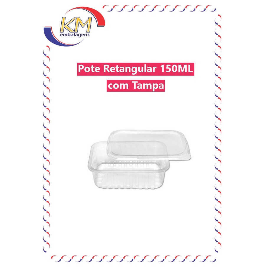 Pote retangular s/lacre 150 ml c/tampa 20 unid. - Prafesta - marmita fitness, salada fitness, embalagem alimentos