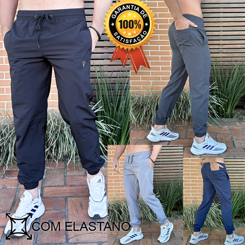 Kit 3 Calça Jogger Tactel com Elastano para Treino Esportiva Masculina academia corrida bicicleta