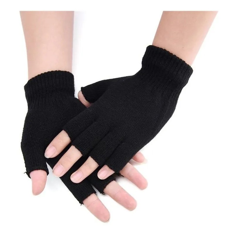 Luva Meio Dedo De Lã Inverno Frio Unissex Preto