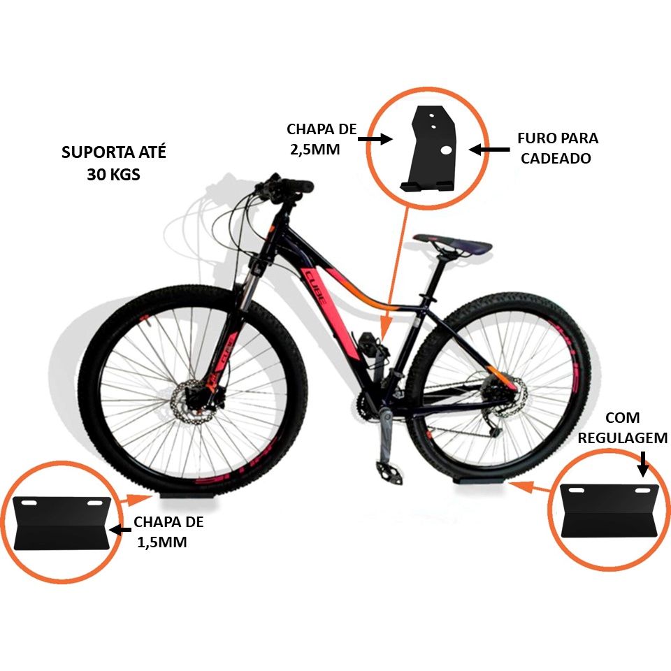 Suporte Para Bicicleta Para Parede chapa grossa Horizontal Kit Bike Mtb Speed e Universal
