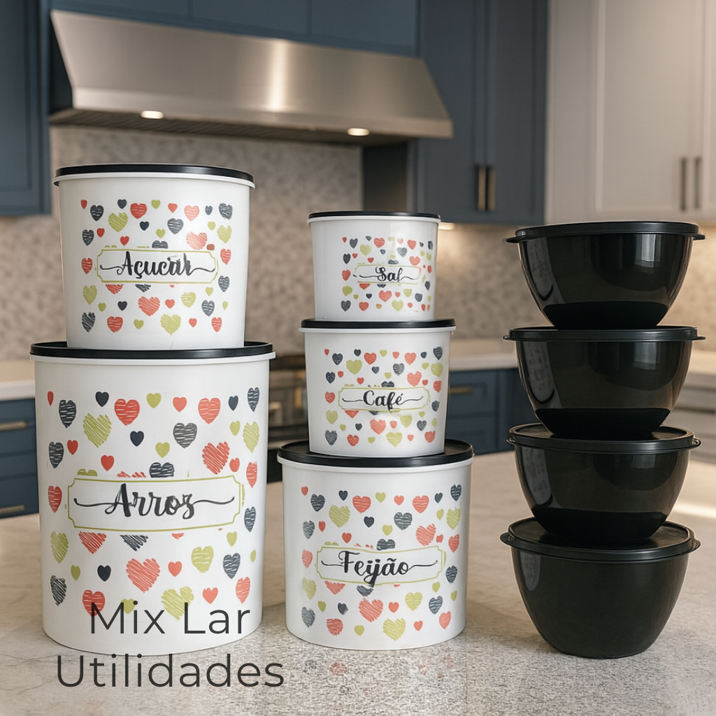Kit potes de mantimentos para cozinha 5 peças + 4 potes redondos Boll de plástico