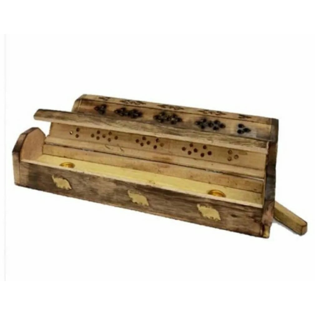 Incensário Porta Incenso Indiano Baú Caixa Madeira Metal