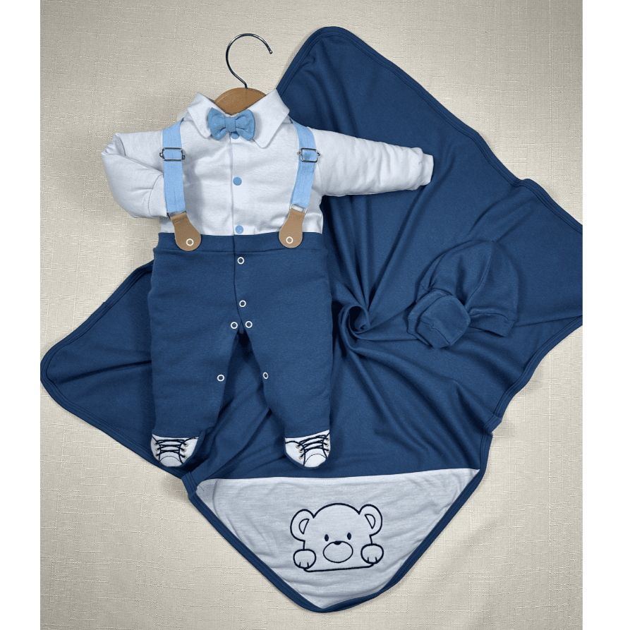 Kit Saída Maternidade Menino Social Suspensório Azul Petróleo