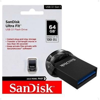 Pen Drive 64gb Sandisk Z430 Ultra Fit Usb 3.1 Preto 130mbps