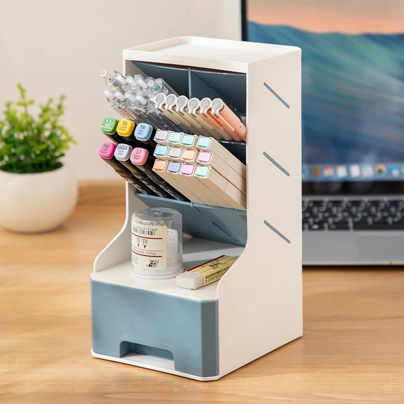 Organizador Multiuso De Mesa Escritório Porta Treco Caneta Lápis Com 1 Gaveta
