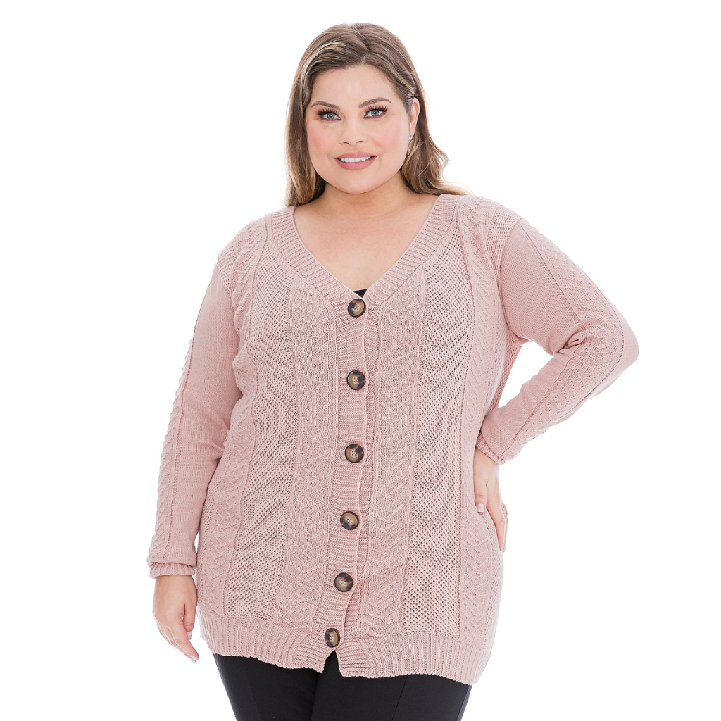 Blusa Casaco De Frio Botão Ponto Colmeia Tricot Plus Size Inverno