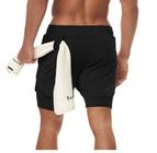 Bermuda Masculina 2 em 1 Academia e Esportes Shorts Masculino com Bolso