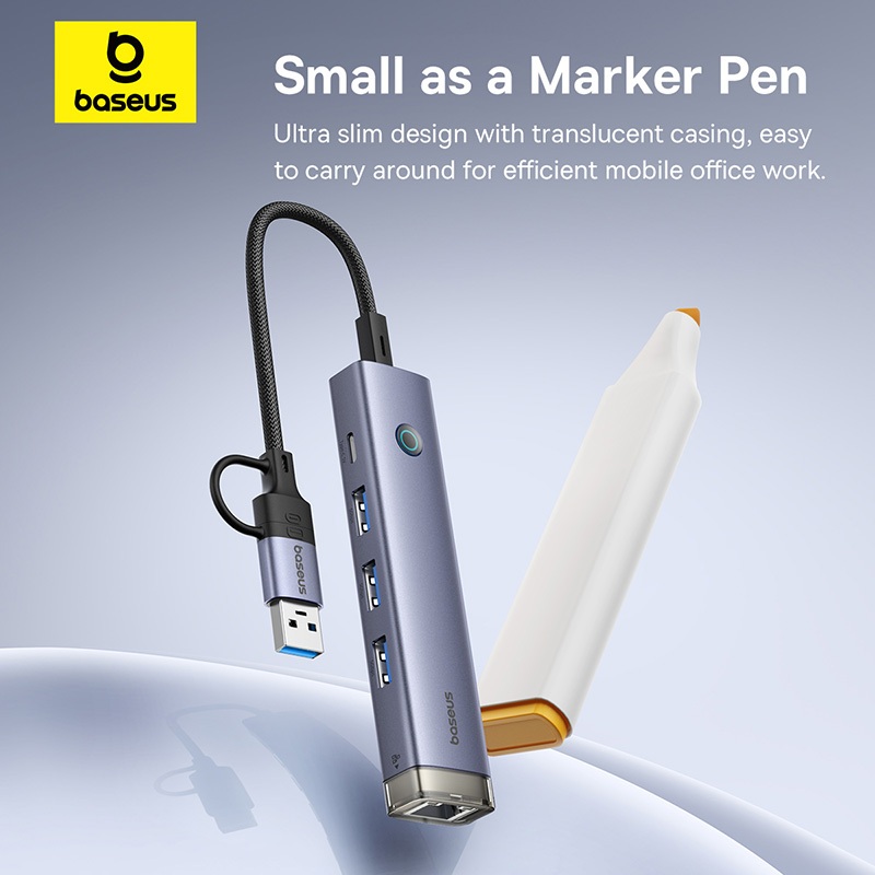Baseus UltraJoy Air Series USB-A/C Conversível 4-Em-1 Hub 3X 3.0 5Gb/s RJ45 10Gb 15W Carregamento