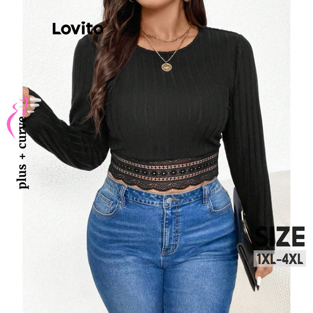 Lovito Camiseta feminina plus size curva elegante de renda lisa LNL60207