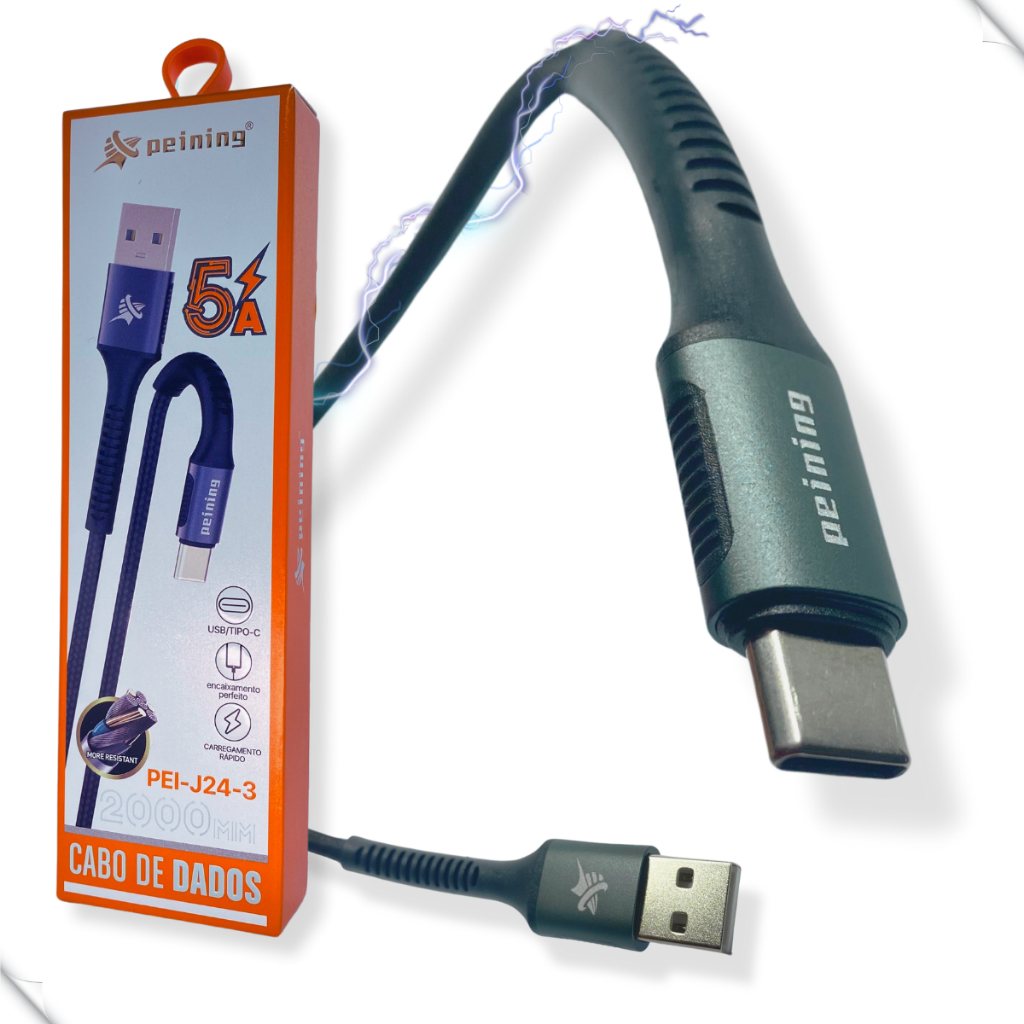 Cabo Tipo C 5A Carregamento Rápido Transferencia de Dados USB C Nylon Trançado