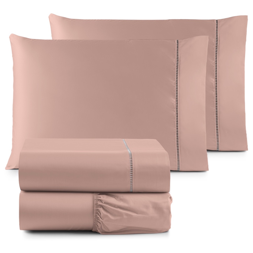 Jogo De Lençol Super King 3pcs 400 Fios Com Elástico Hotel - Toque de Pêssego - Acetinado