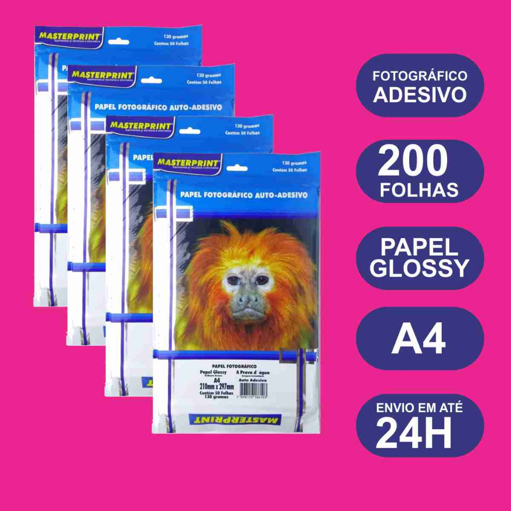 Papel Fotográfico Adesivo Glossy 130gr 200 Folhas A4 210mm x 297mm Qualidade MasterPrint