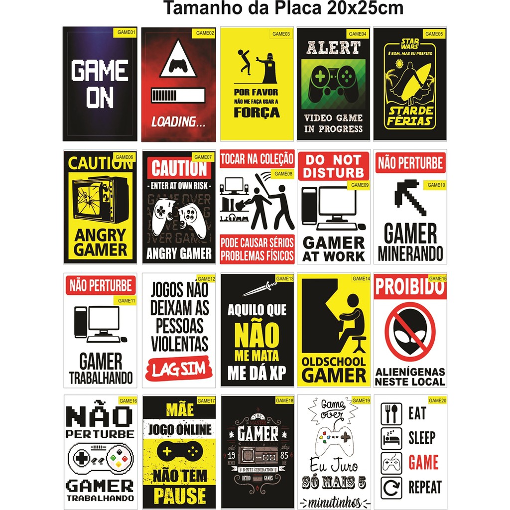 Games - 01 A 20 Placa Decorativa Aviso Jogos Geeks - Quadro Parede & Decoração - Presente