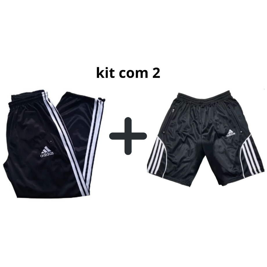 Kit bermuda e calça Dry Fit chimpa bolso de zíper / cordão e elástico academia corrida esportiva