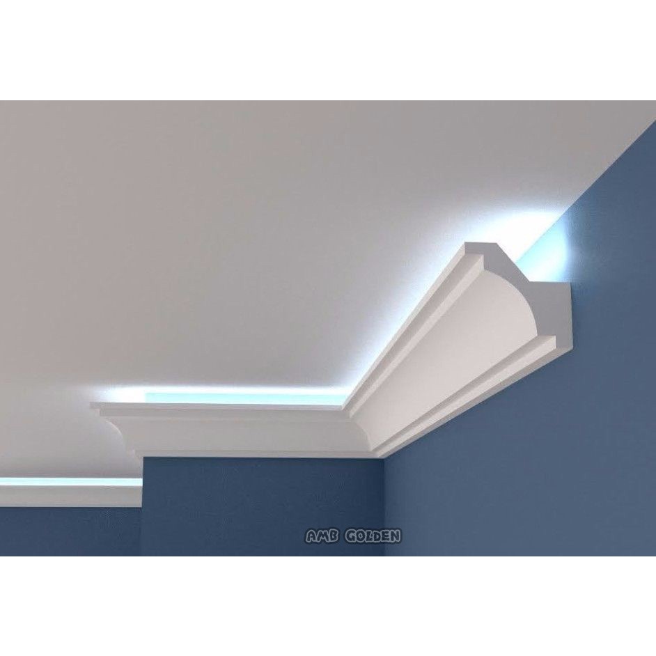 3m de Moldura rodateto de XPS liso 9cm Sanca p/ fita de LED iluminação indireta ñ gesso eva madeira pvc