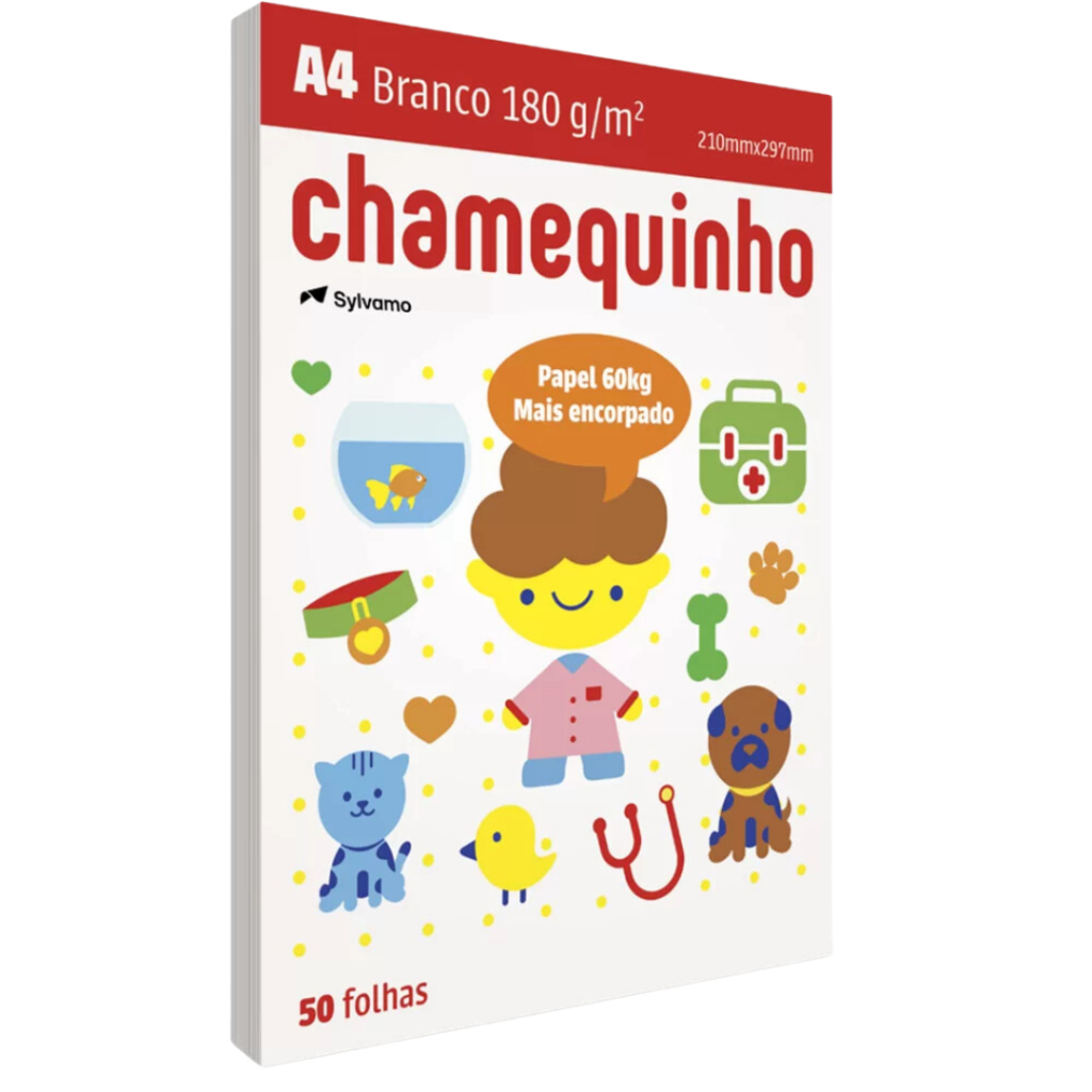 Papel Sulfite Opaline 180Gr Chamequinho Branco A4 210mmx297mm 50 Folhas