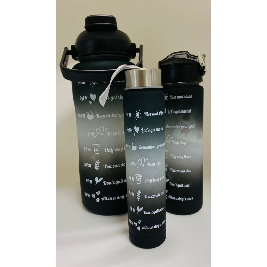 Kit 3 da Garrafa de Água Squeeze Motivacional Com Adesivos tamanhos 300ML+900ML+2000ML