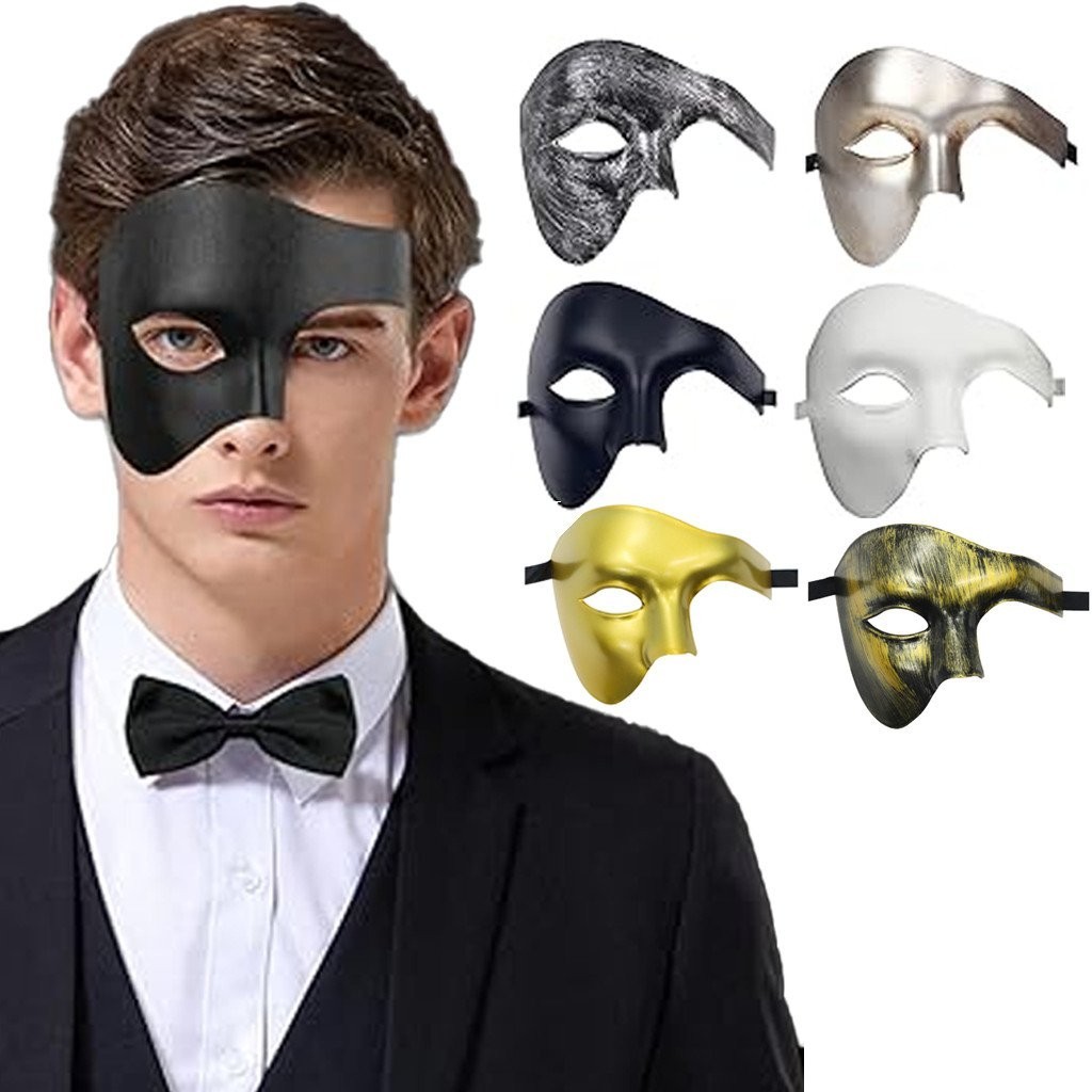 Máscara Masculina Fantasma da Ópera Meia Face Design Vintage Máscara de Carnaval Veneziano