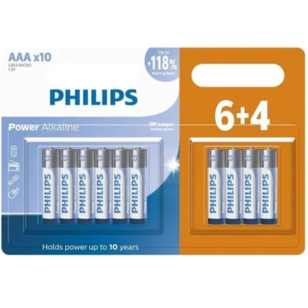 Pilhas Alcalinas Philips AAA Palito Cartela Com 10 Unidades tipo Cilindrico modelo AAA Comum Normal electrónica, aparelho de pressão, controle e lanternas