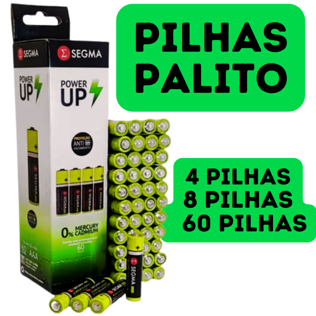 Pilhas Palito AAA e Pilhas comum AA com 4un 8un e 60 unidades