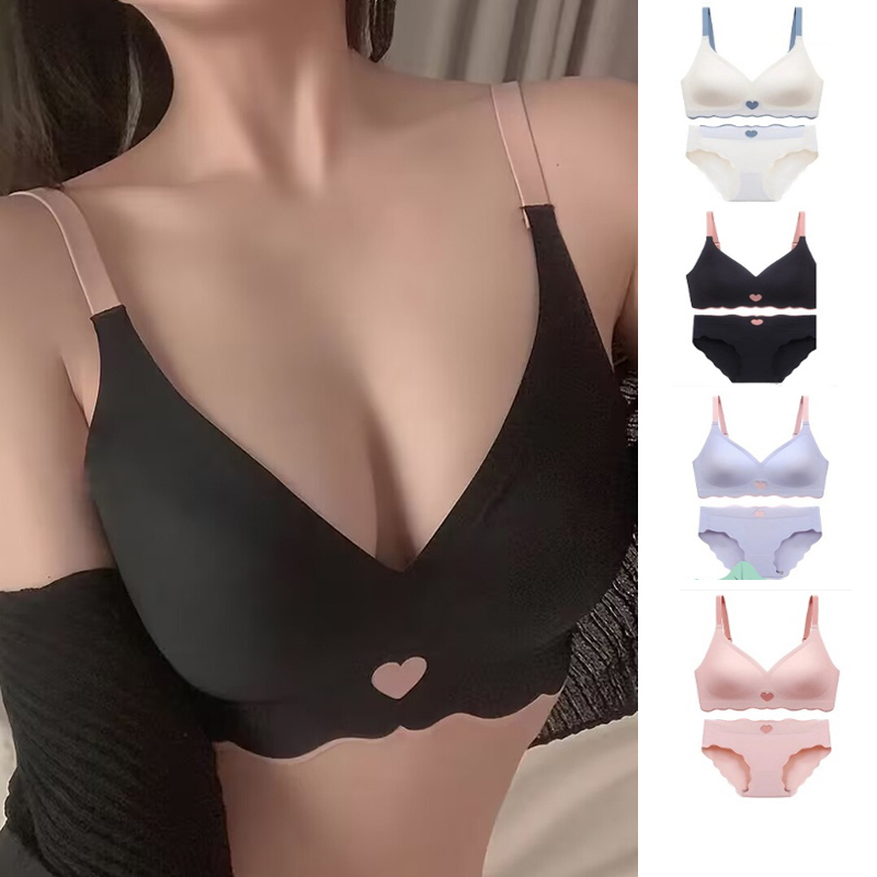 FINETOO Roupa Íntima Feminina Sem Costura Conjunto De Japonesa SUJI Bras Peach Heart Wireless Undies Push Up Bra Jelly Underwears Lingerie Sexy