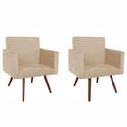 Conjunto 2 Poltronas Decorativas Para Sala Nina Pés Palito Suede Bege VickyDecor