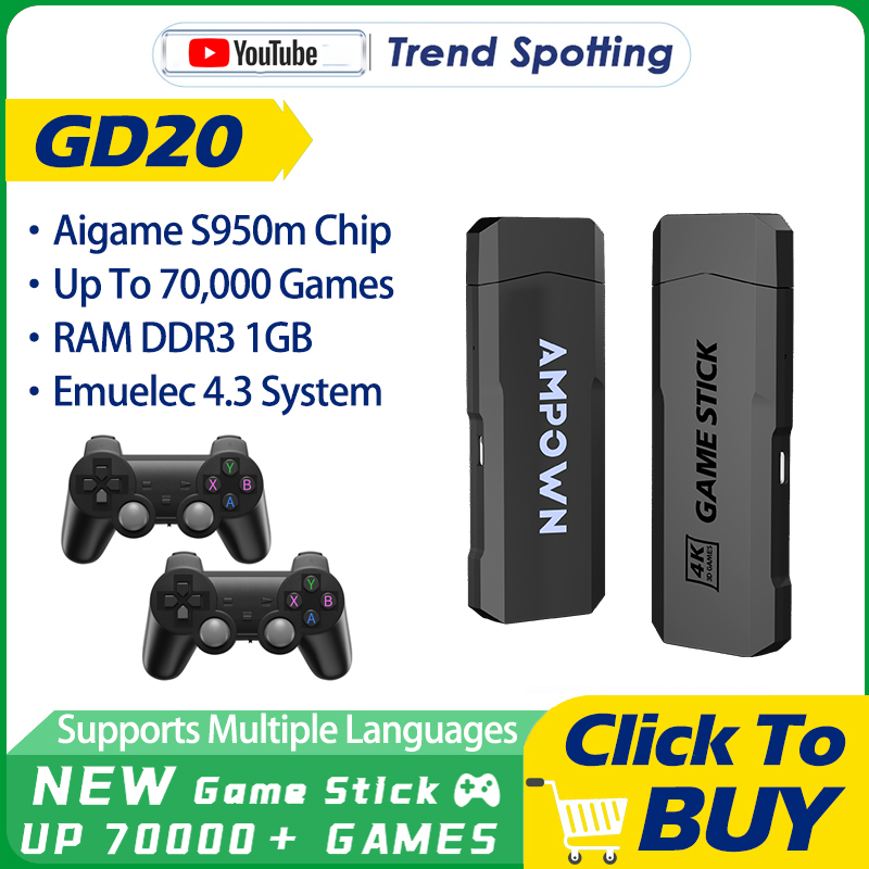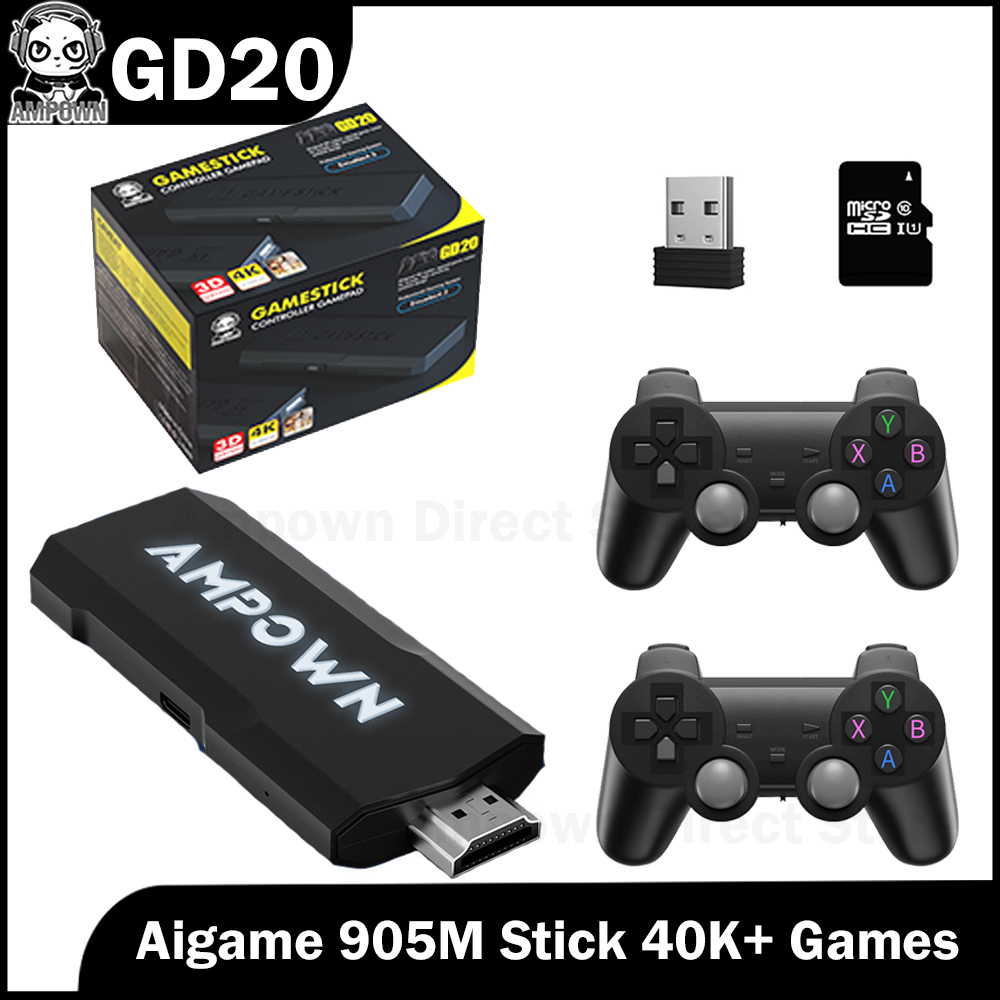 Ampown-GD20 4K Game Stick GD20 Video Console, 2.4G Controlador Sem Fio, CPU, Aigame 905M, Emuelec4.3, Suporte Retro, 40K + Jogos