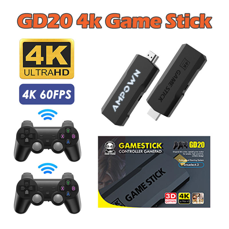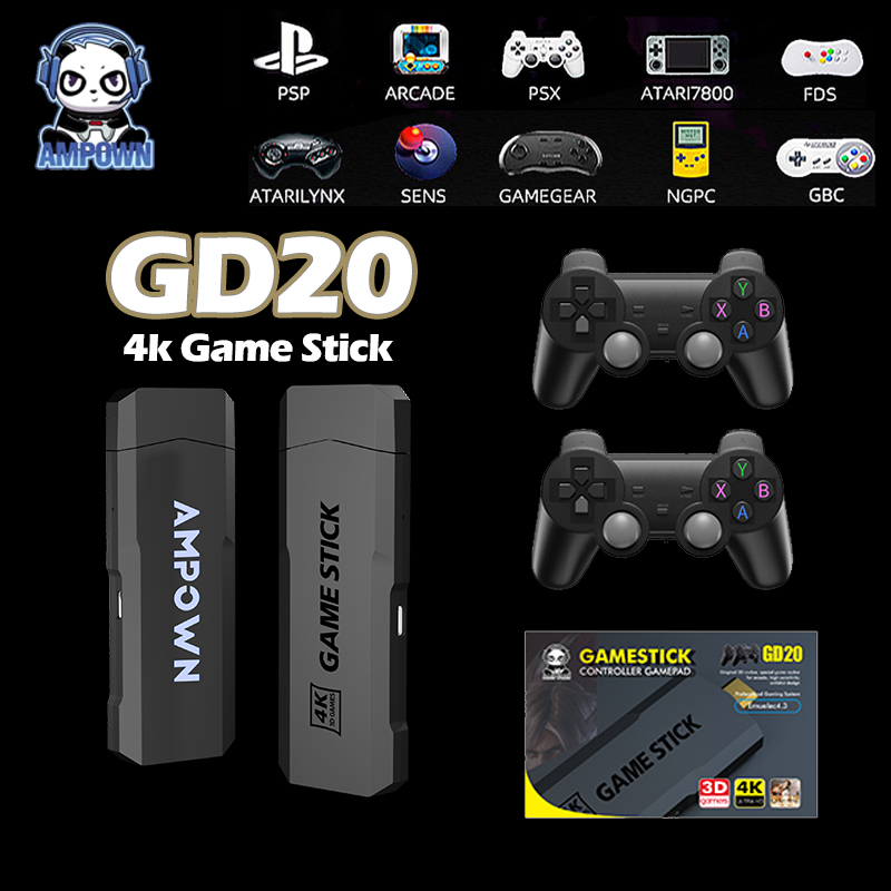 Ampown GD20 Game Stick 4K Retro Video 2.4g Controlador Sem Fio PSP PS1
