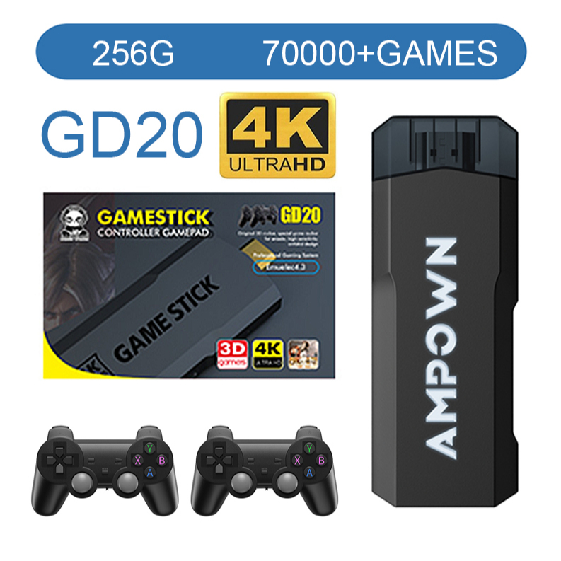 Novo Console De Vídeo Game GD20 TV 4K Stick De Jogo 2.4G Wirelss Retro Controlador HDMI Gamepad Com 256G 70000 Jogos FC PS1 PSP