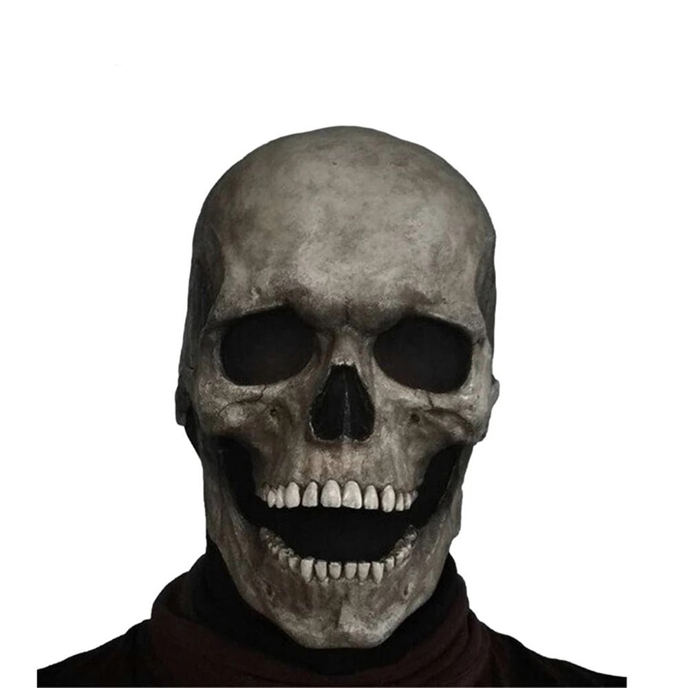 Mandíbula Móvel Cabeça Cheia Crânio Máscara Esqueleto Halloween Cosplay Assustadora Capacete De Terror Para Festival Fes