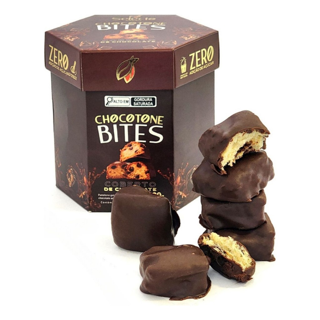Mini Panetone Chocotone Bites Sem Açúcar Cobertura de Chocolate Selecto Cacau 120g Fermentação Natural Presente Natal Fi