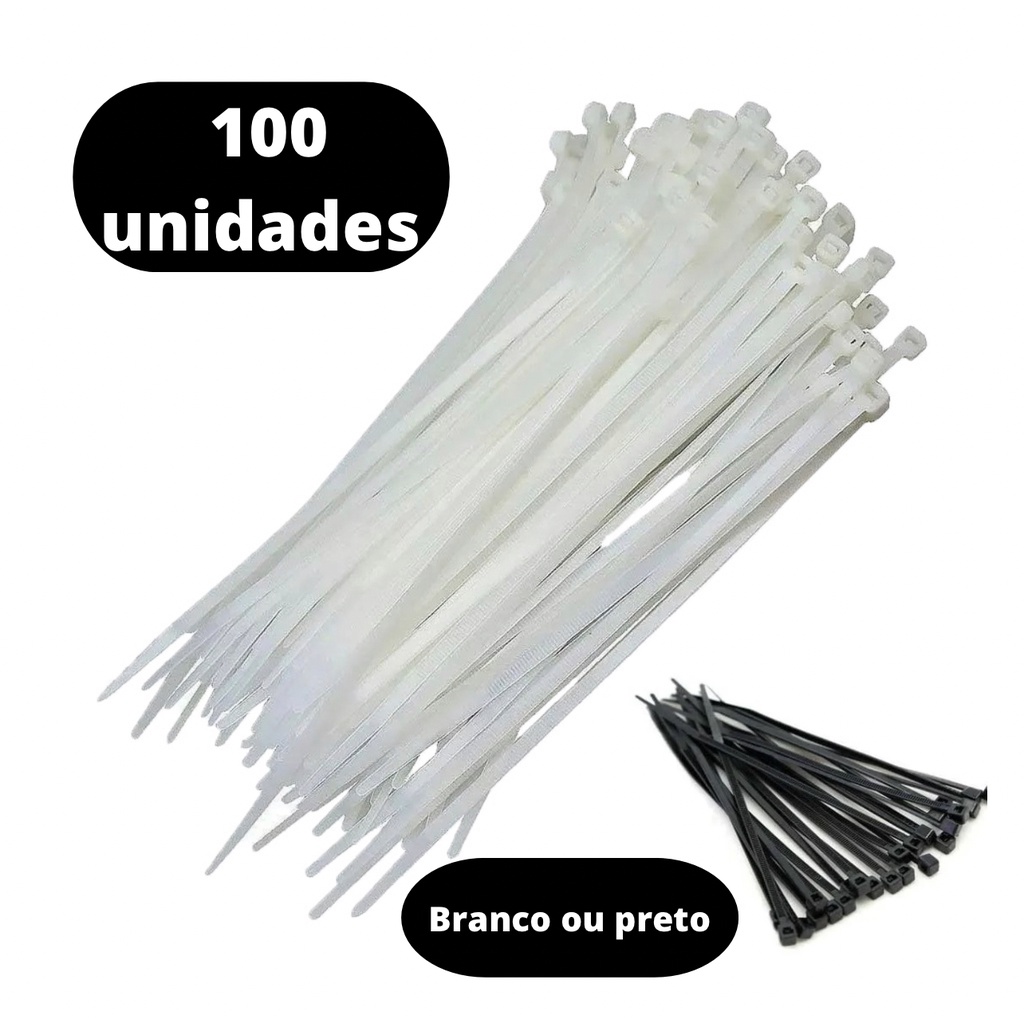100 Abraçadeira Nylon Cintas Plásticas Enforca Gato Preto/Branco - Várias Medidas
