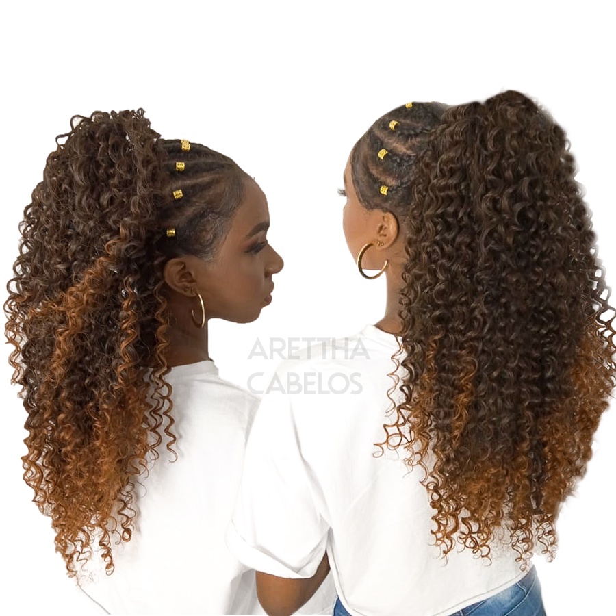Rabo De Cavalo Cacheado Orgânico 60cm Com Presilha Pratico e Fácil de usa para uso diario