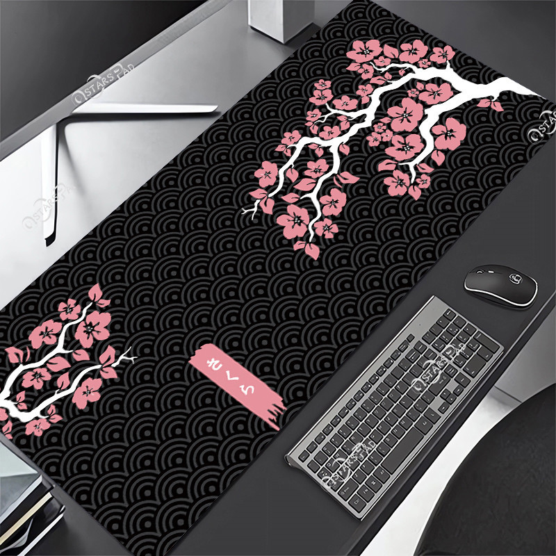 80x30cm Morte E Vida Tapete De Rato Rosa Flores De Cerejeira Mesa Preto Sakura Mousepad De Computador Big Landscape Keyboard Deskpad 900x400mm 2mm Espessura Flor Grande Gamer Mausepads