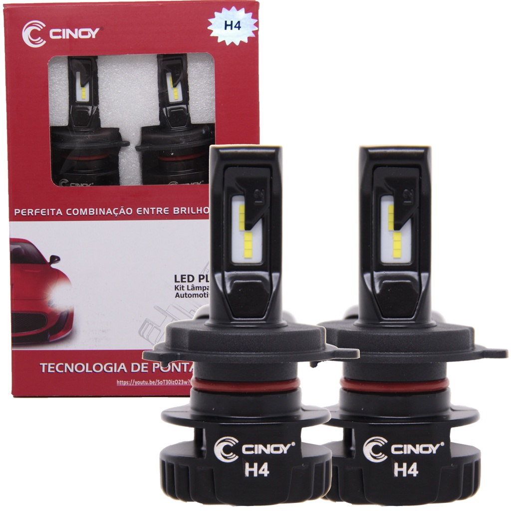 Par Lâmpadas Super Led Plus Farol H4 CINOY 6500K 6000LM 12V/24V Kit